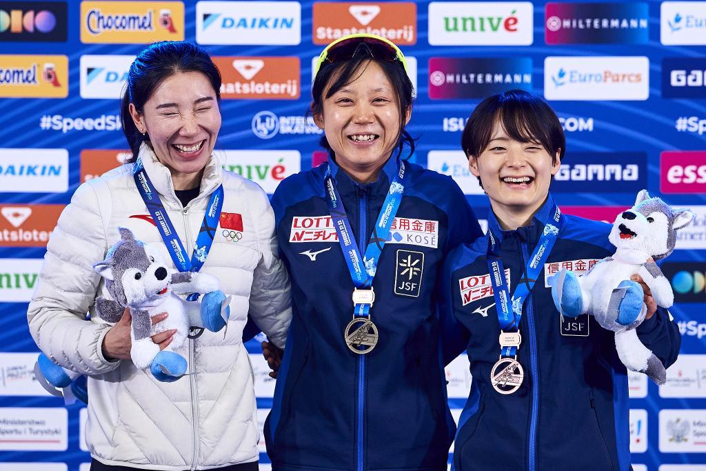 2024-2025赛季速度滑冰世界杯波兰站女子1000米,韩梅获得银牌,高木美帆获得金牌。